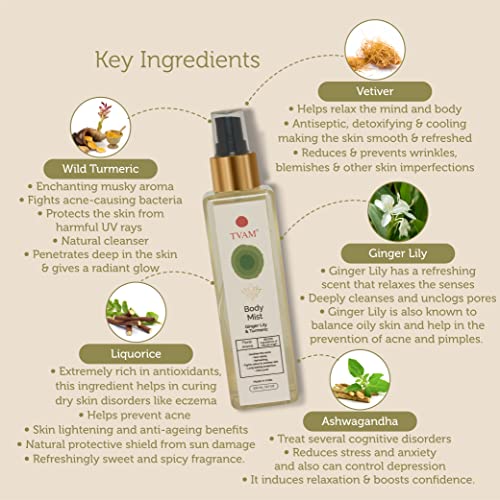 TVAM Body Mist | Ginger Lily Turmeric | For Everyday use | Sulphate-free Silicone-Free - 200ml