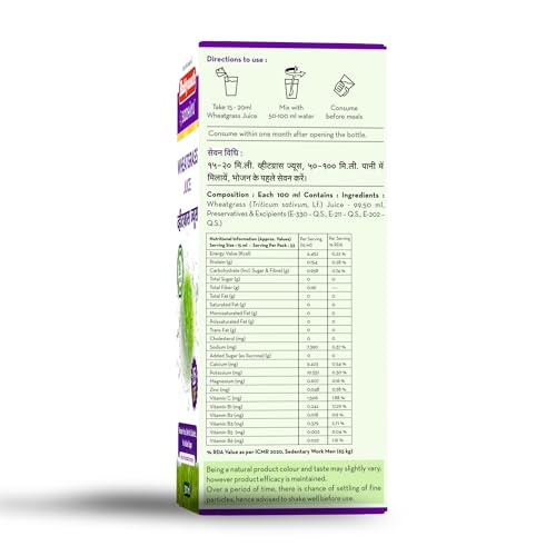 How to Enjoy: Take 15-20 ml of Siddhayu Wheatgrass Juice mix with 50-100 ml of water consume before meals.