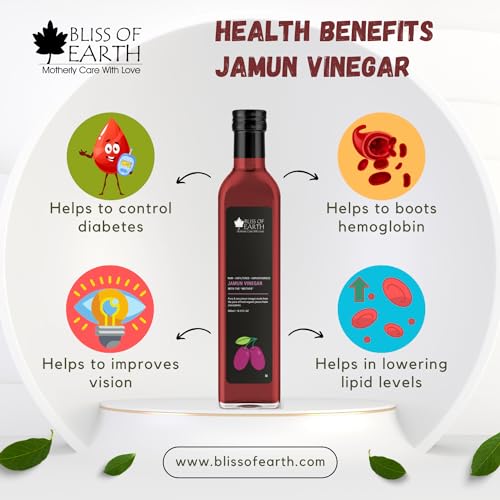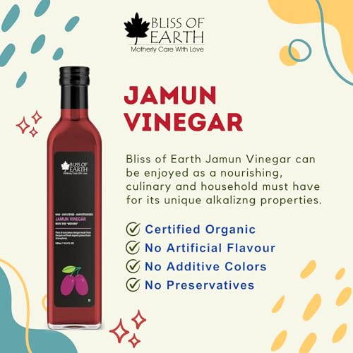 Bliss of Earth Raw Jamun Vinegar With Mother, UnfilteredJava Plum Vinegar For Cooking, Healhty Digestion & Metabolism, 500ml