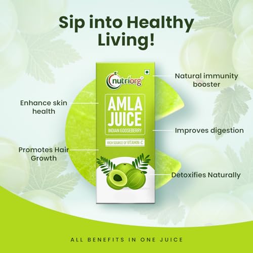 HomeHealth & PersonalDiet & NutritionHealth DrinksNutriorg Amla Juice 1L | Organic Amla Juice for Hair & Skin | Rich in Vitamin C | Cold-Pressed Indian Gooseberry Juice | Detox, Weight Loss & Immunity Boosting | No Added Sugar | Pure & Natural