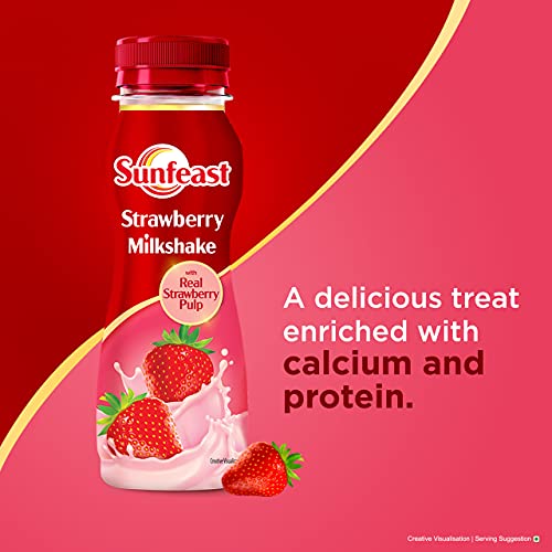 Sunfeast Strawberry Milkshake, Thick, Creamy Milkshake with Real Strawberry Pulp, Enriched with Calcium and Protein, No Added Preservatives, 180ml