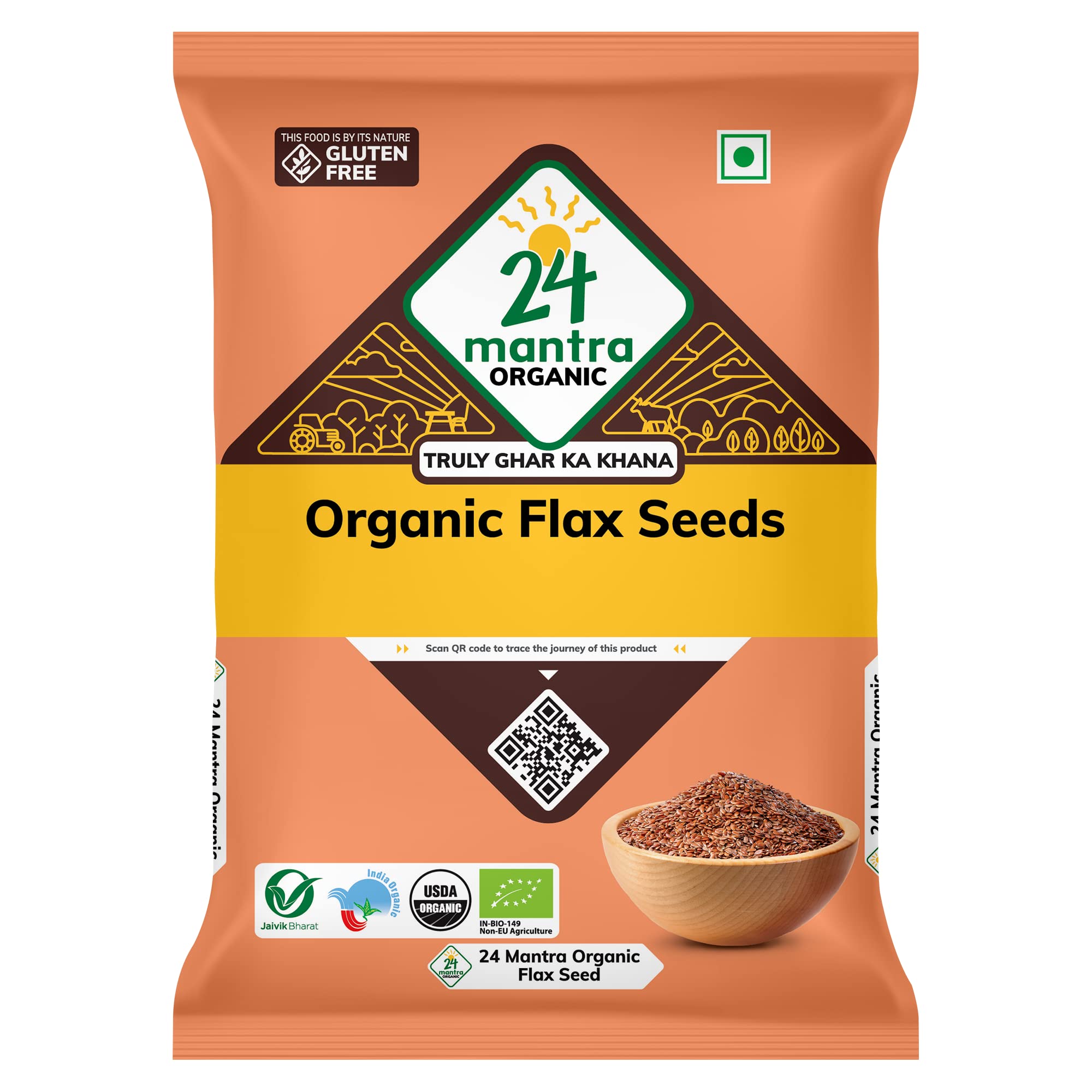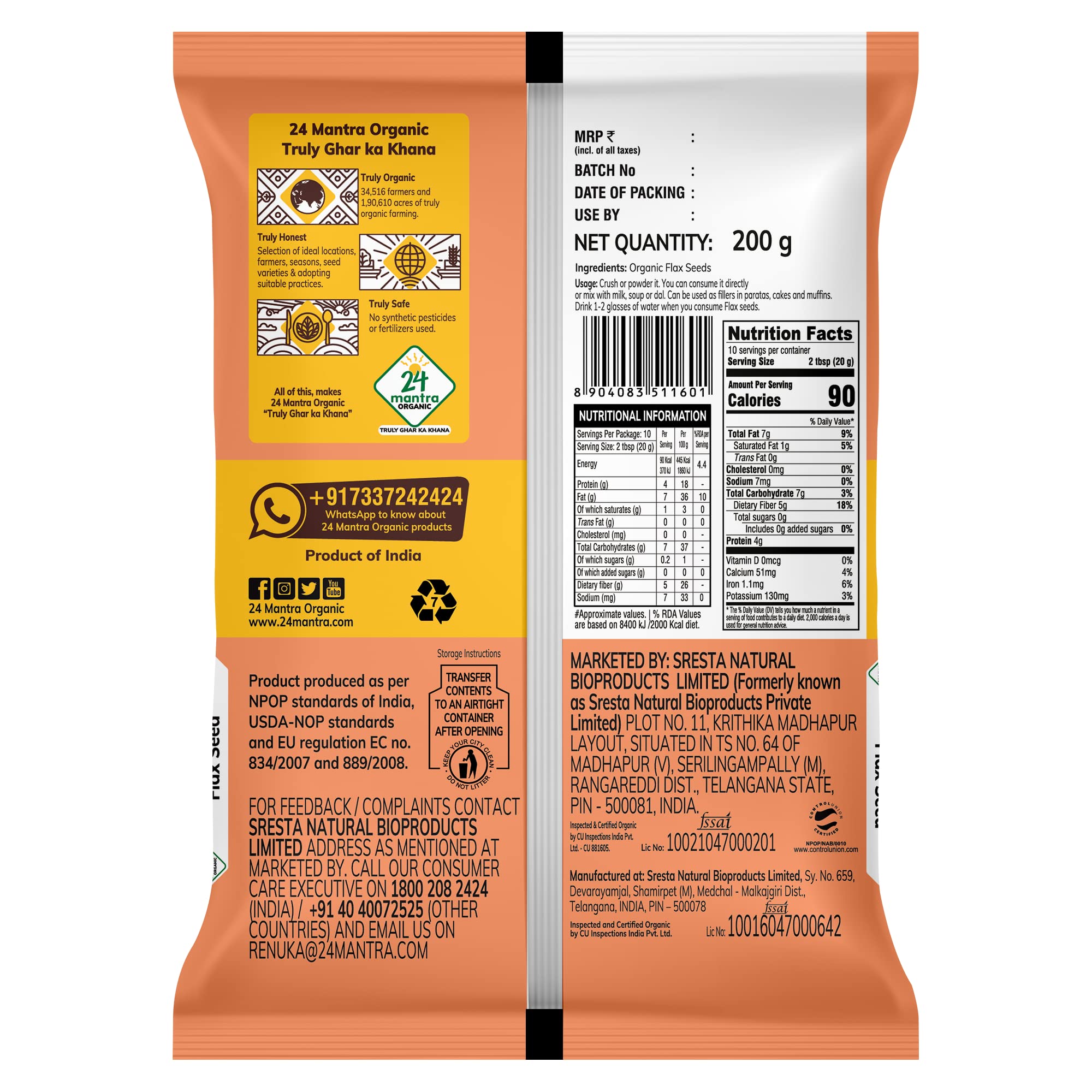 24 Mantra Organic Flax Seeds/Alsi/Avise Ginjalu - 200gms | Pack of 1 | 100% Organic | Chemical Free & Pesticides Free | Enhances Flavour | Unadlutrated