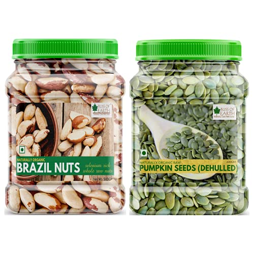 Bliss Of Earth Combo of Healthy Brazil Nuts Selenium Rich Super Nut (500gm) and Dehulled Pumpkin Seeds (600gm) for Eating & Weight Loss Pack of 2