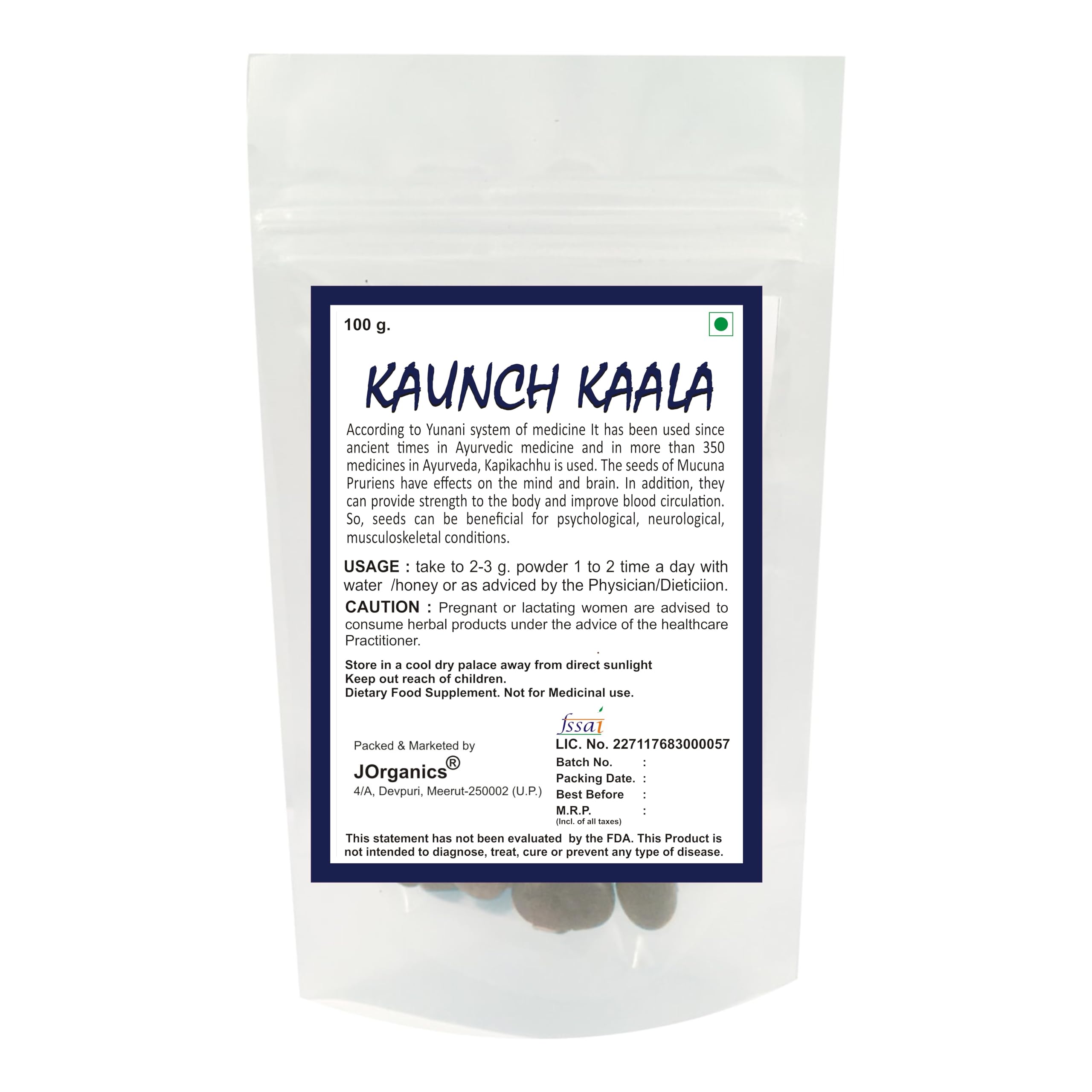 JOrganics 100% Natural Premium Kaunch Black Seeds | Kaunch k Beej | 100g