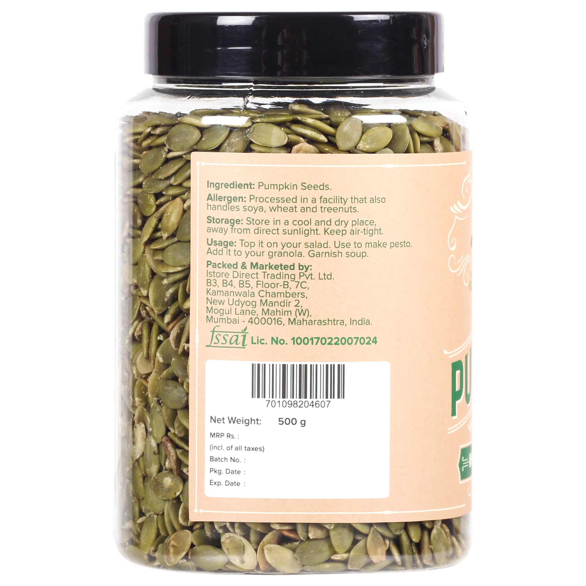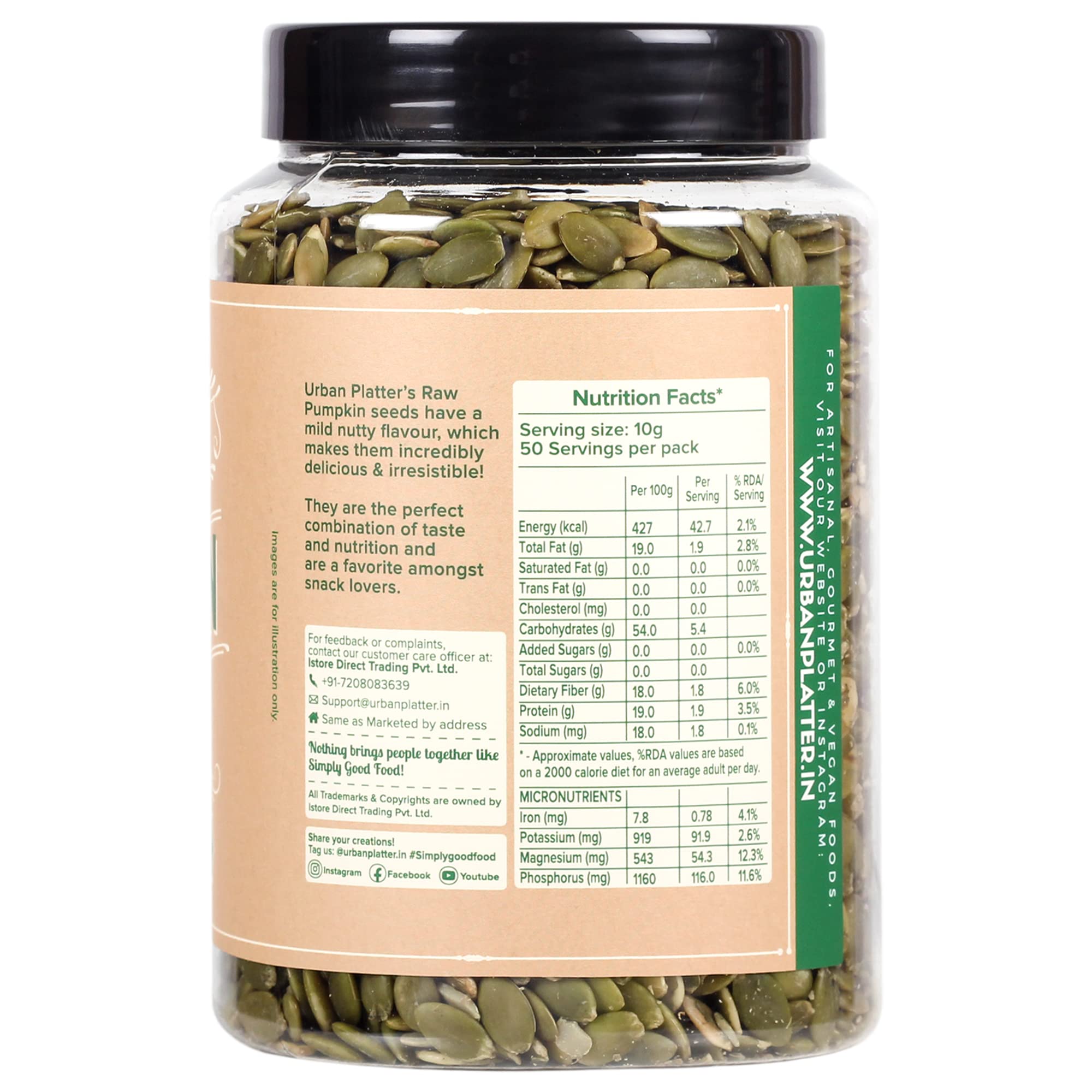 Urban Platter Raw Pumpkin Seeds 500g (Use in Salads Trail Mixes Baked Goods Granola Bars Desserts | Keto Diet Friendly | | Pepitas Seeds | Healthy Superfood Snack)