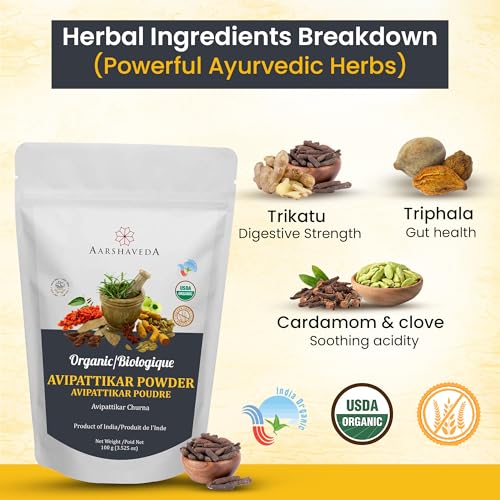 Aarshaveda Organic Avipattikar Powder | Acidity Ayurvedic Medicine | USDA | EU Organic | Halal Certified | 100 Gm
