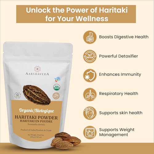 Aarshaveda Organic Haritaki Powder | Churna | Organic | Natural Harde Powder | EU Organic | Pack Of 200 Gm