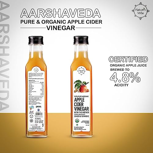 Aarshaveda Pure & Organic Apple Cider Vinegar With Mother | Naturally Infused With Turmeric & Ginger | For Weight Loss | Strengthens Immunity | 250ml
