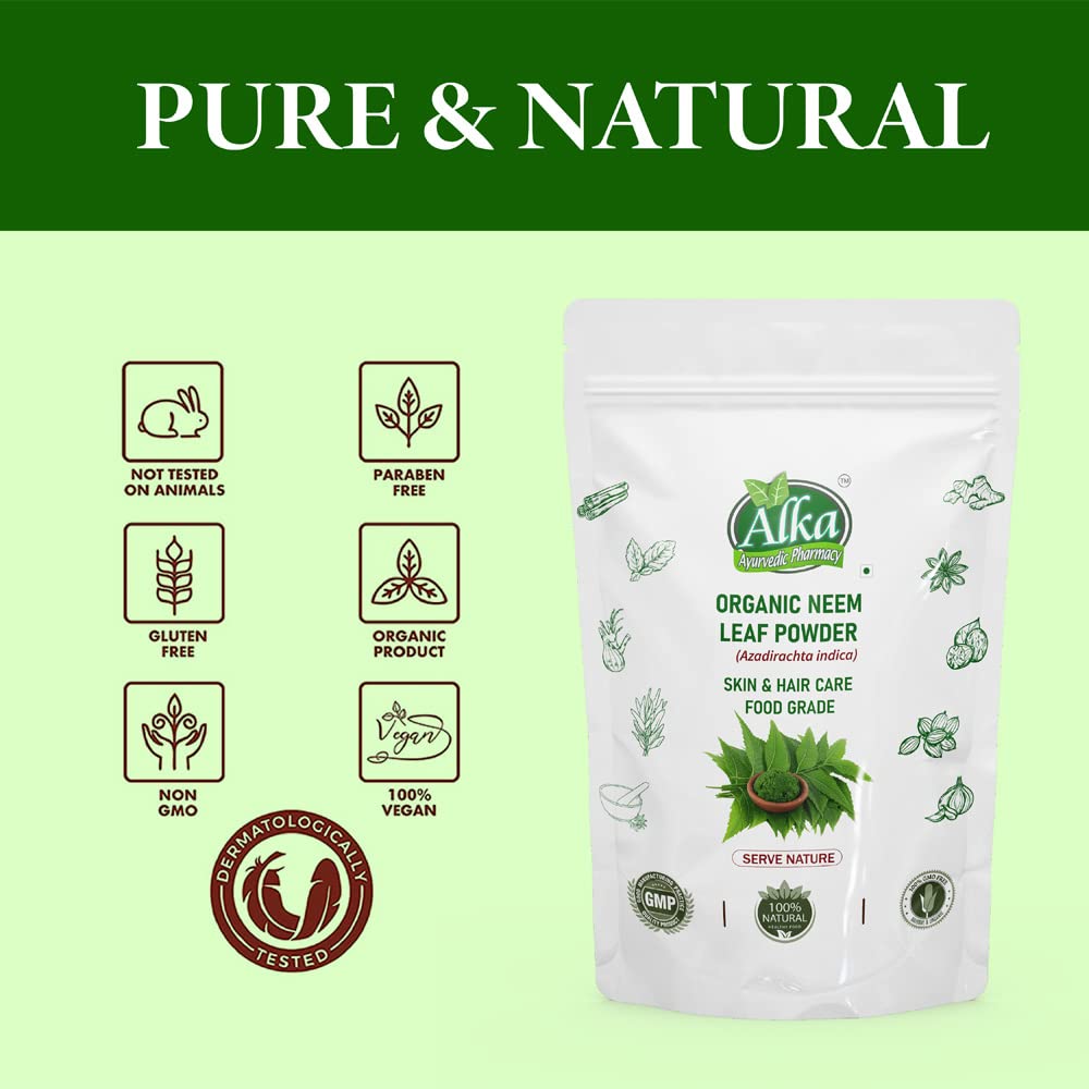 Alka Ayurvedic Pharmacy Pure Natural Neem Leaf Powder || Healthy Hair & Hair Cleanser || Skin Acne Face Packs || For Man And Women - 100 Gm