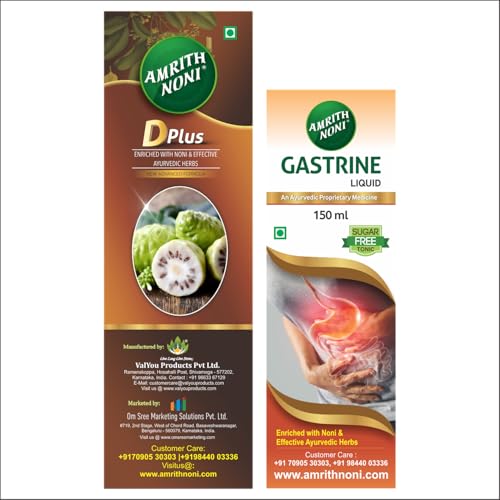 Amrith Noni D plus How to consume: 1st week - 5ml with 50ml warm water 2nd week - 10ml with 100ml warm water 3rd week - 15ml with 150ml warm water Twice a day. Amrith Noni Gastrine Sugar Free juice: How to consume: 1st week - 5ml with 50ml warm water 2nd