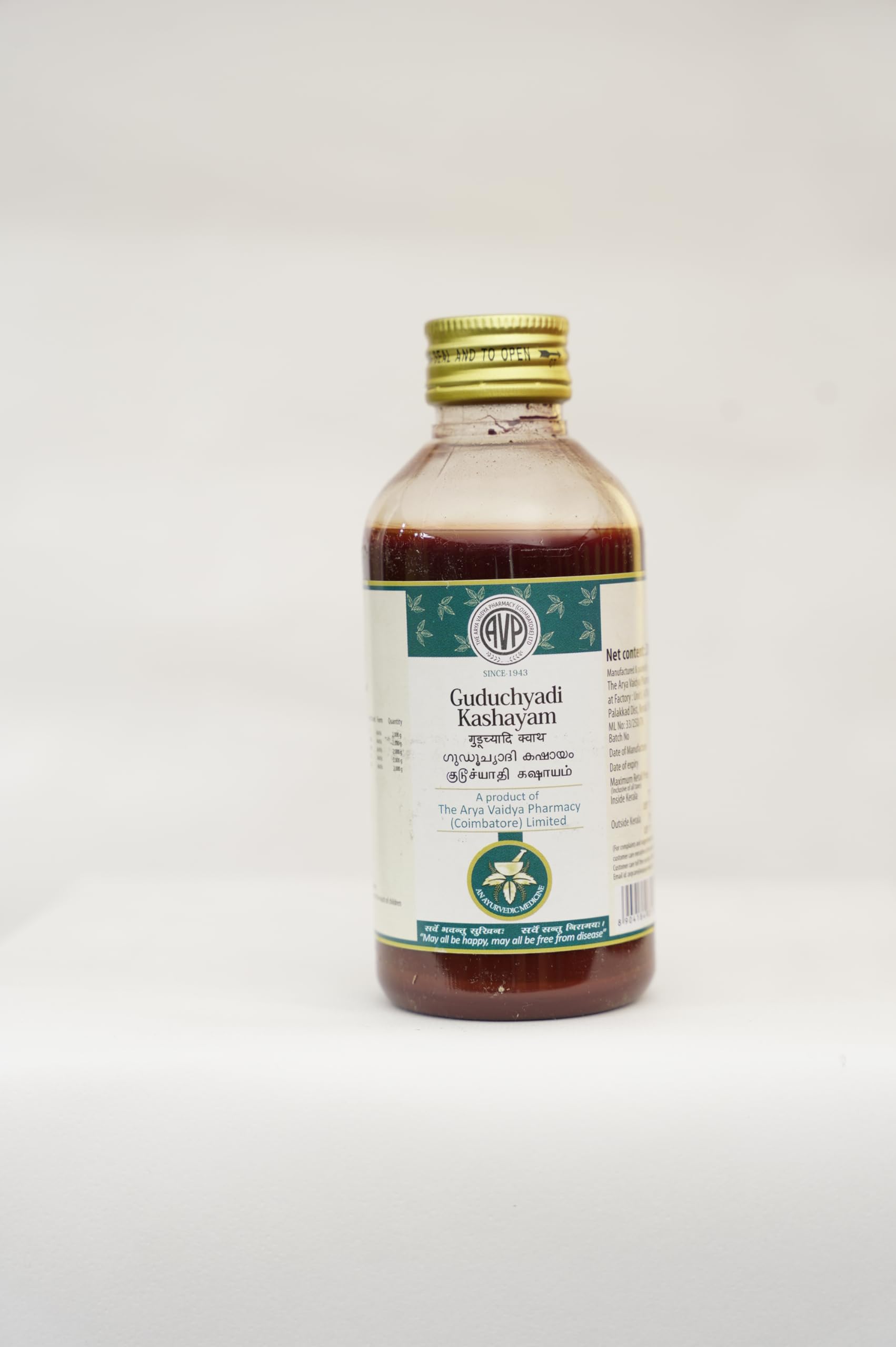 AVP Guduchyadi Kashayam 200 ML | Beneficial in Skin Diseases | Eases Burning Sensation | Combats Indigestion | Helps Relieve Pitta Conditions and Fever