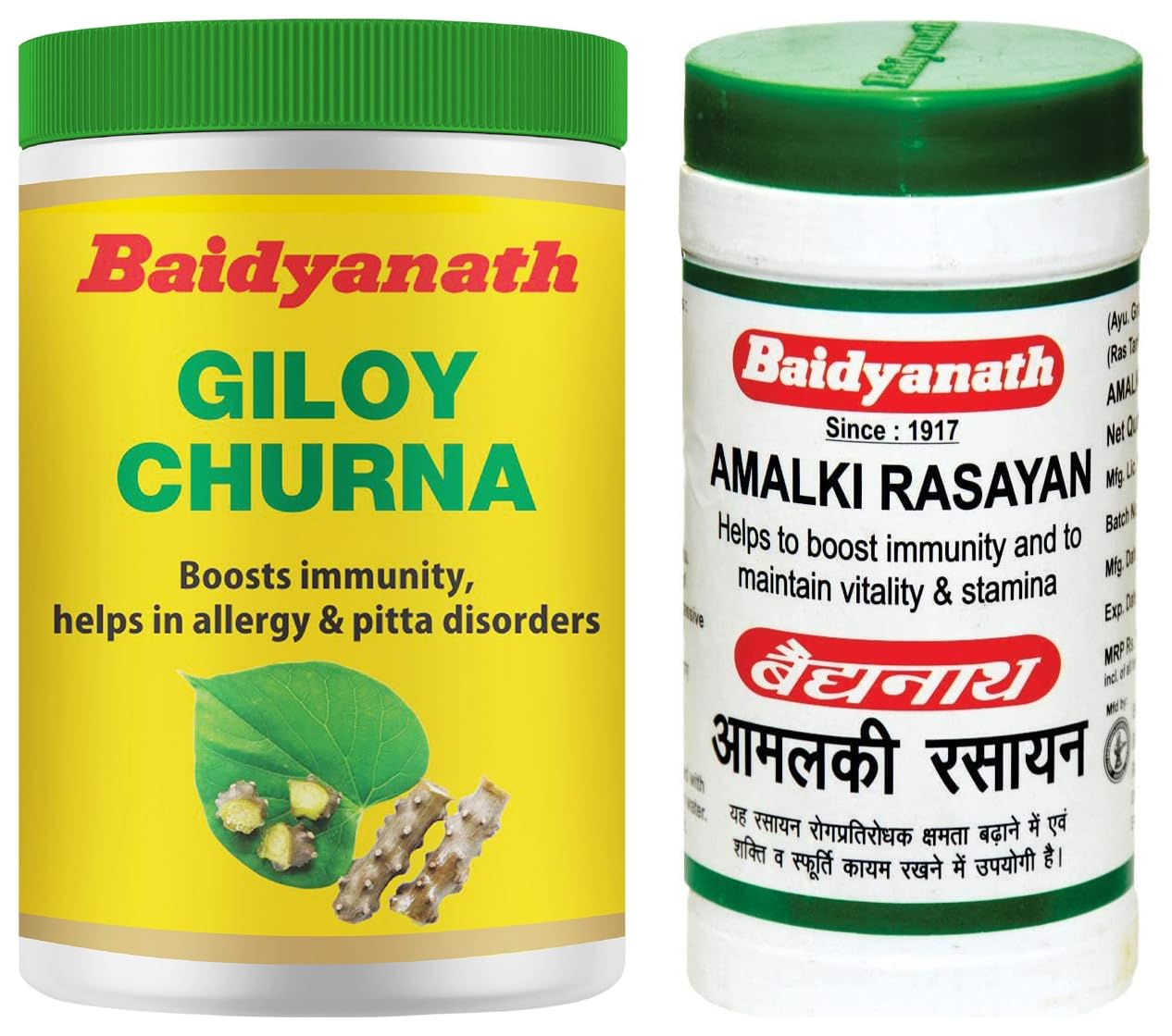 Baidyanath Amlaki Rasyan Pack of 1-120 g powder (Packaging may vary)&Baidyanath Guduchi (Giloy) Churna - Helps Boost Immunity - 100 gm (pack of 2)