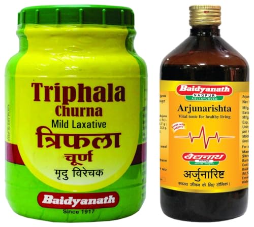 Baidyanath Arjunarishta Liquid 450 ml & Baidyanath Nagpur Triphala Churna, Vitamin C, Iron & Zinc, Natural,Pack of 500 g