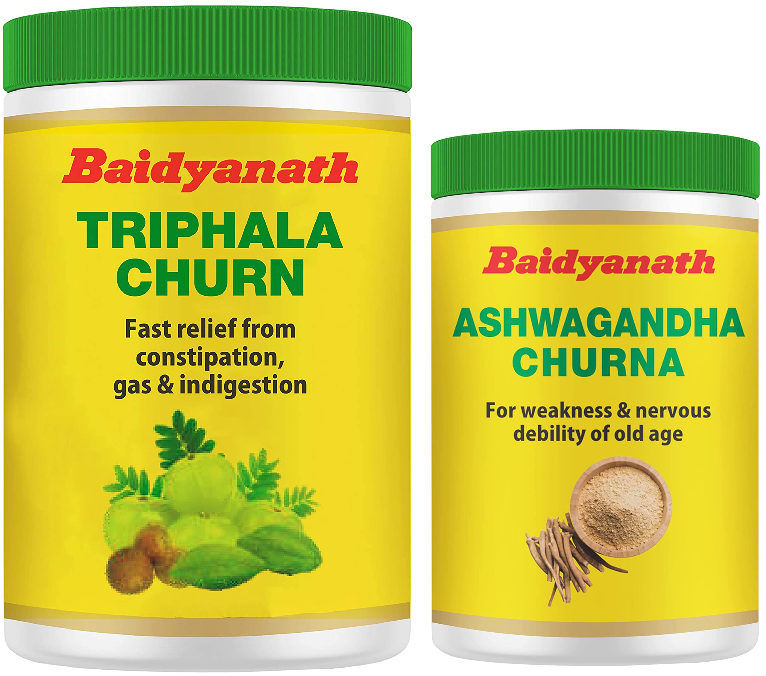 Baidyanath Ashwagandha Churna Helps Boost Energy 100G (Pack Of 2) & Triphala Churna Quick Relief From Digestive Distress240G (Pack Of 2)