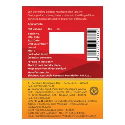 Baidyanath Asli Ayurved Arjunamrita - 450ml | Ayurvedic Herbal Tonic with Arjuna Vidarikand & Kamal Phool | Traditional Wellness Support