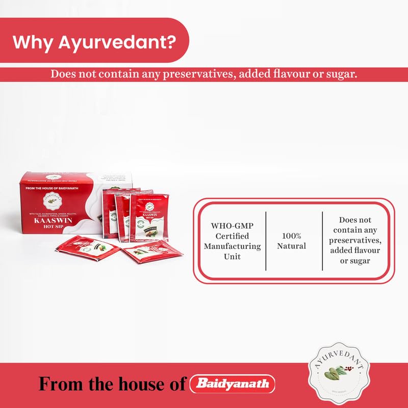 Baidyanath Ayurvedant Kaswin Hot Sip 30 Sachets - 100% Ayurvedic Kadha for Cough Cold Sore Throat & Natural Immunity Boosting