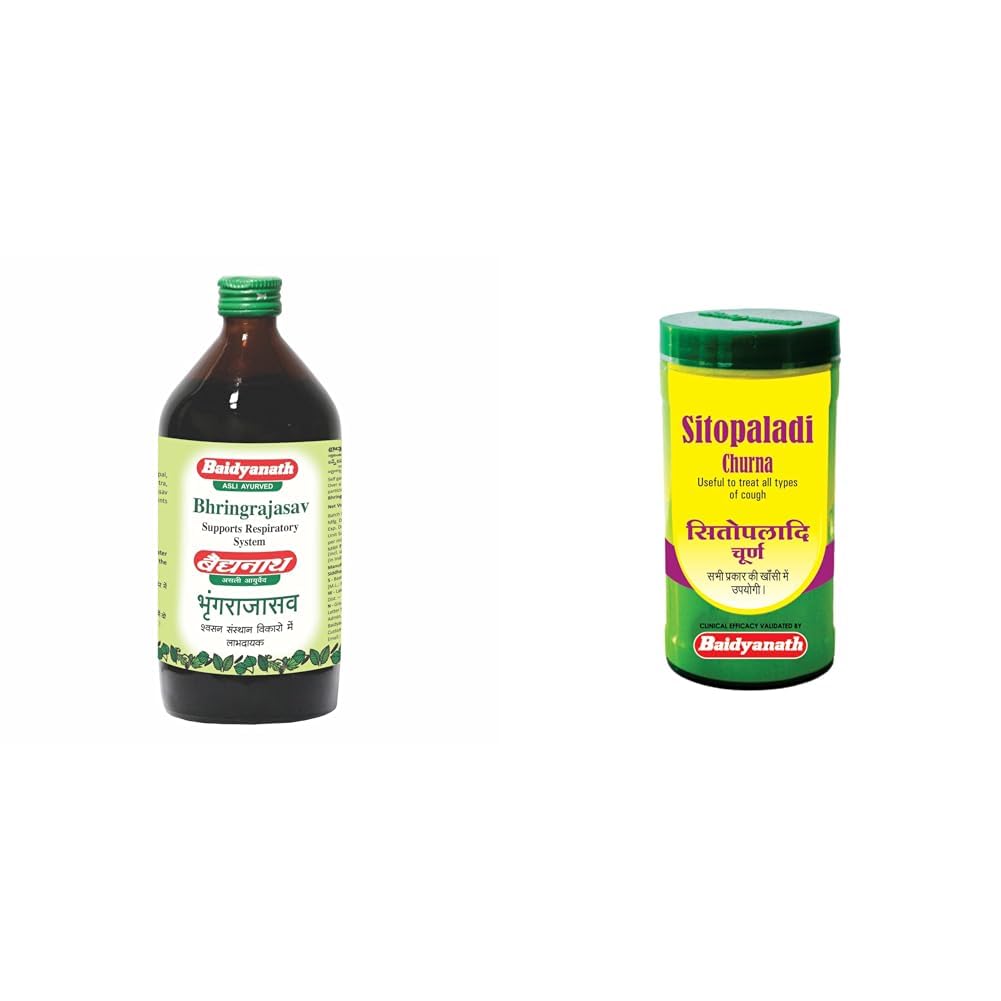 HomeHealth & PersonalDiet & NutritionHerbal FormulationsBaidyanath Bhringrajasava 450 ml Syrup |Made with Natural Ayurvedic Ingredients for Hair Liver Cough & Baidyanath Asli Ayurved Sitopaladi Churna | Useful In All Types Of Cough - 60 G
