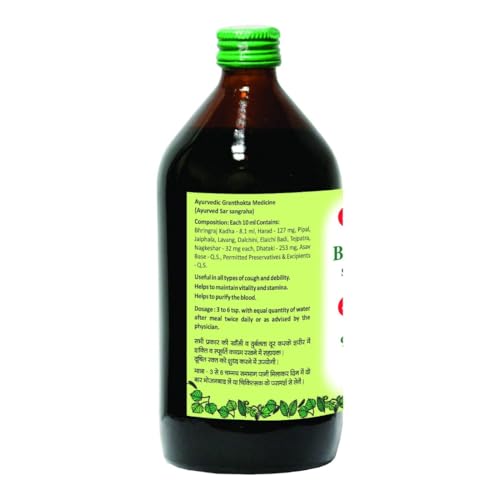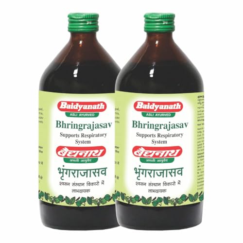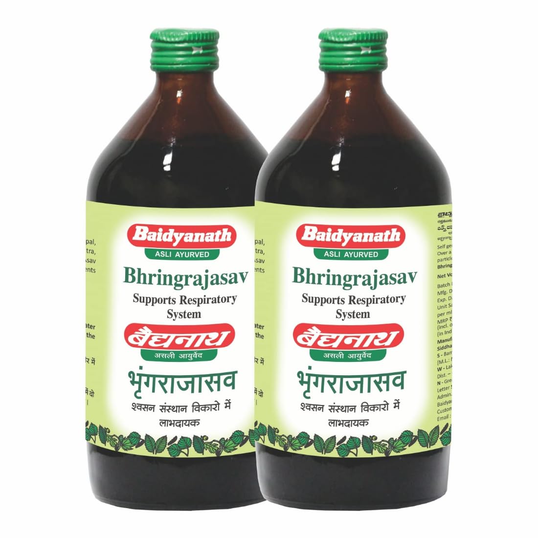 Baidyanath Bhringrajasava 450 ml Syrup |Made with Natural Ayurvedic Ingredients for Hair, Liver, Cough Health and Blood Purifer (Pack of 2)