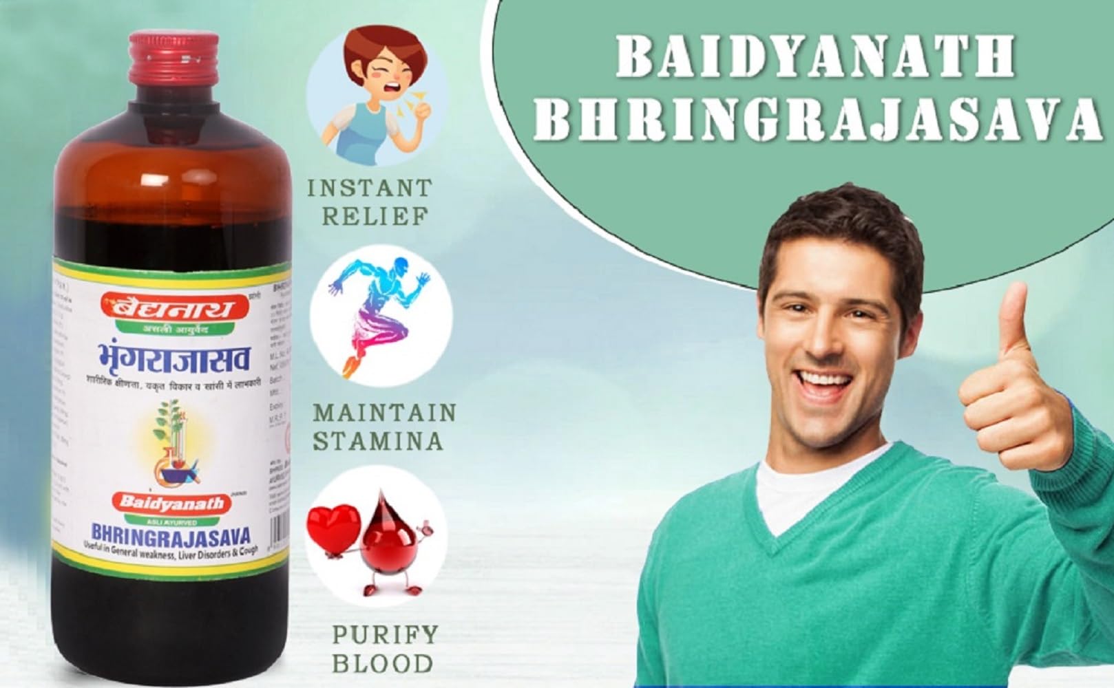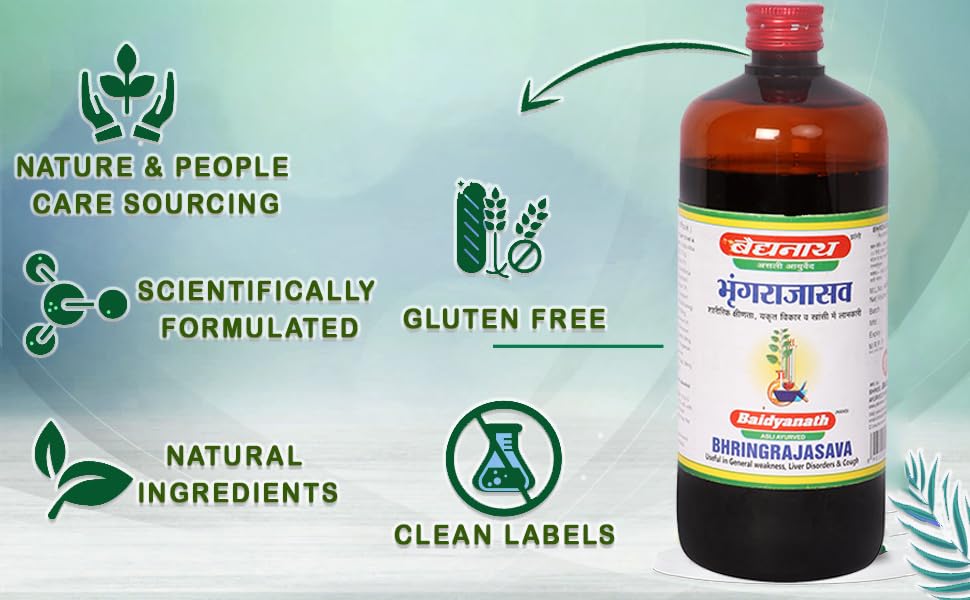 Baidyanath Bhringrajasava Syrup |Made with Natural Ayurvedic Ingredients for Hair Liver Cough Health and Blood Purifer | (450 Ml X 2Pack)