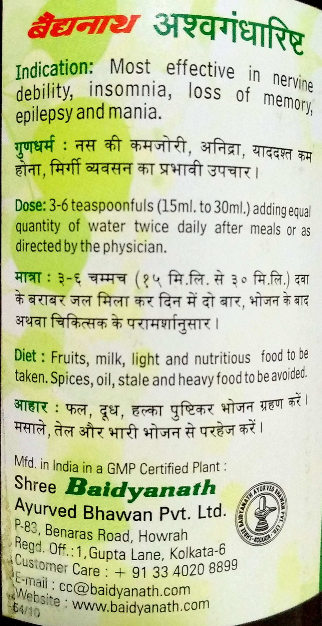 Package Contents: 1 X Baidyanath Ayurvedic Ashwagandharishta