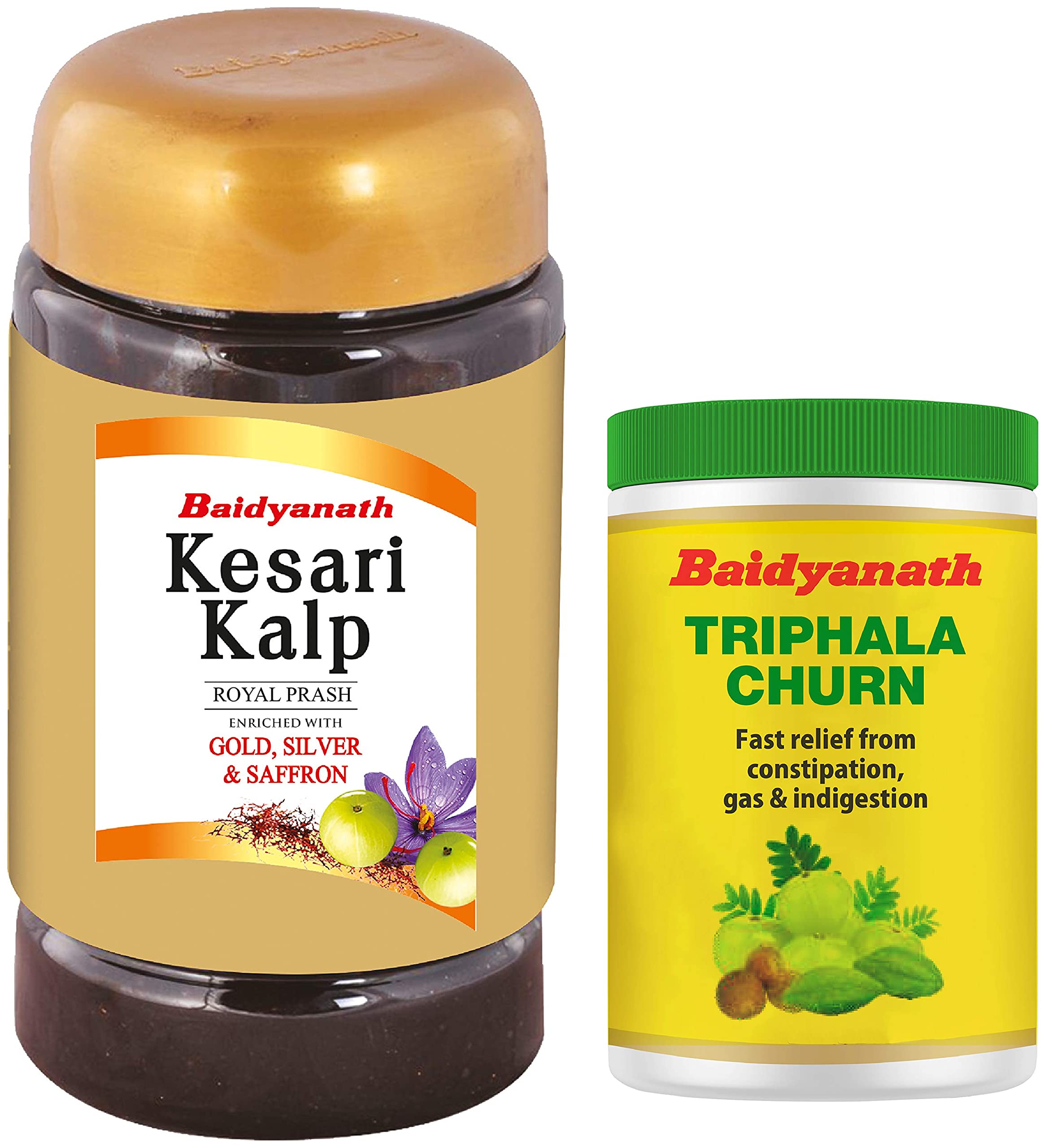 HomeHealth & PersonalDiet & NutritionHerbal FormulationsBaidyanath Kesari Kalp Royal Chyawanprash - 1kg - Promotes Vitality, Strength & Stamina in Adults and Elderly | Revitalizer Enriched with Gold and Saffron & Triphala Churn - 500 g (Pack of 2)