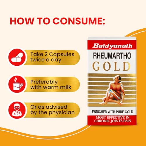 Baidyanath Rheumartho Gold, Enriched with Pure Gold, Effective in Long-lasting relief for Joint and Muscle Pains, Stiffness | (30 Capsules)