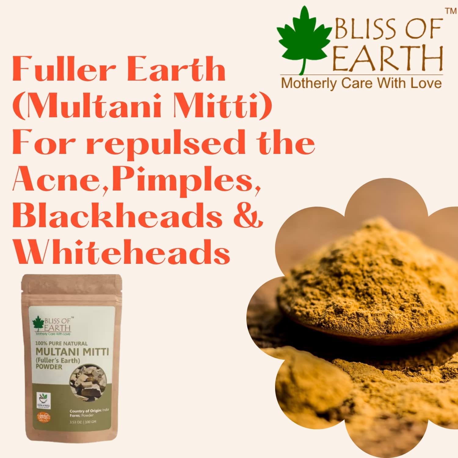 Bliss of Earth 100% Pure & Natural Jatamansi Powder 100GM+100% Pure Multani Mitti Powder | Fuller's Earth Powder | 100GM | Great For Hair Face Skin (pack of 2)
