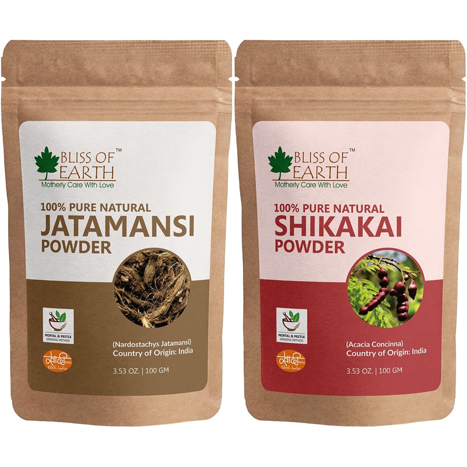 Bliss of Earth 100% Pure & Natural Jatamansi Powder+100% Pure & Natural Shikakai Powder | 100GM | Acacia Concina | Gorgeous hair Naturally | Traditional Hair Cleanser & Conditioner (Pack of 2)