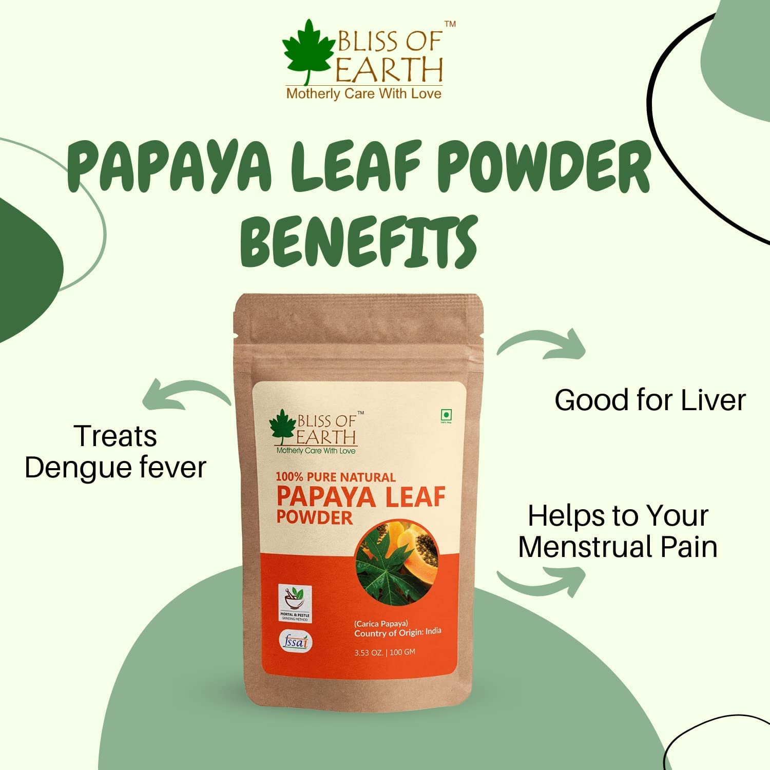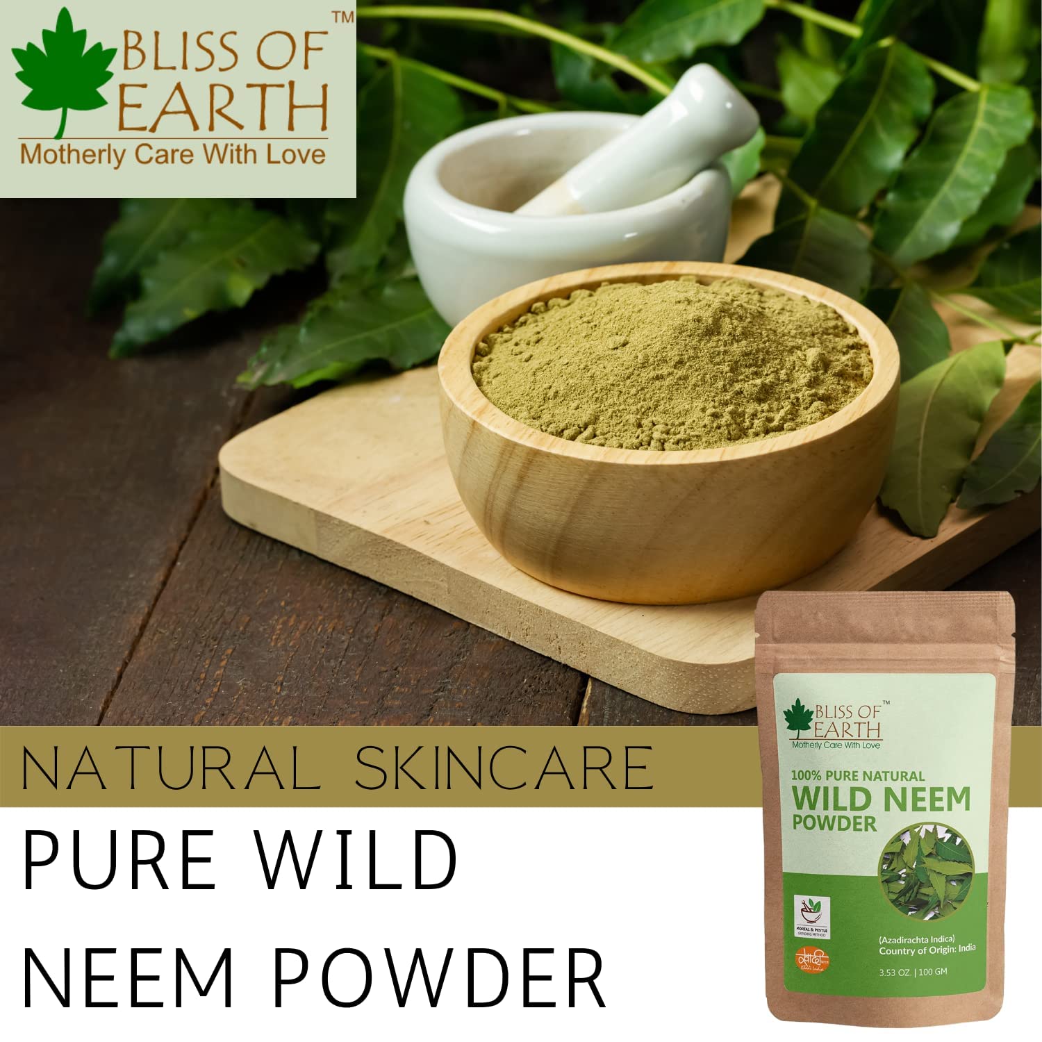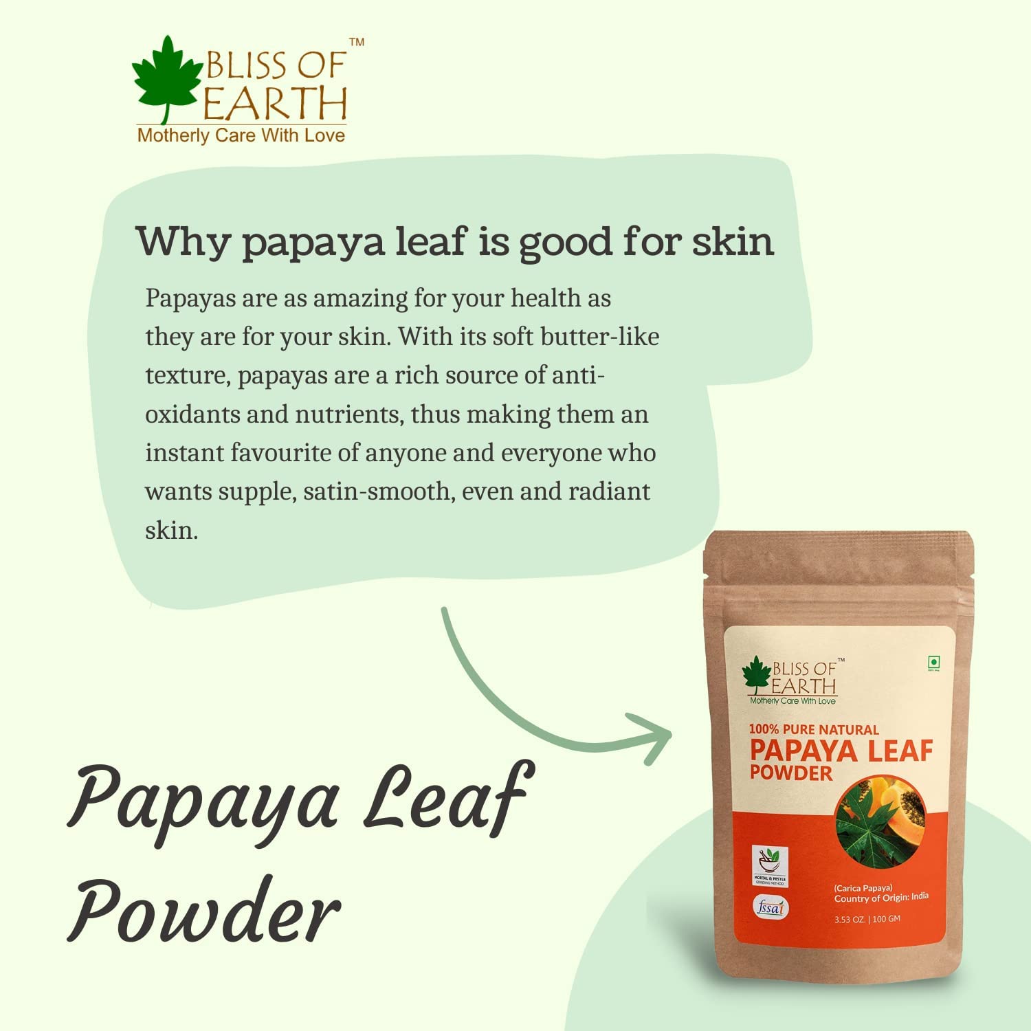 Bliss of Earth 100GM Pure Wild Neem Leaves Powder & Organic Papaya Leaf Powder 100GM Carica Papaya Great For Face Hair Skin & Body
