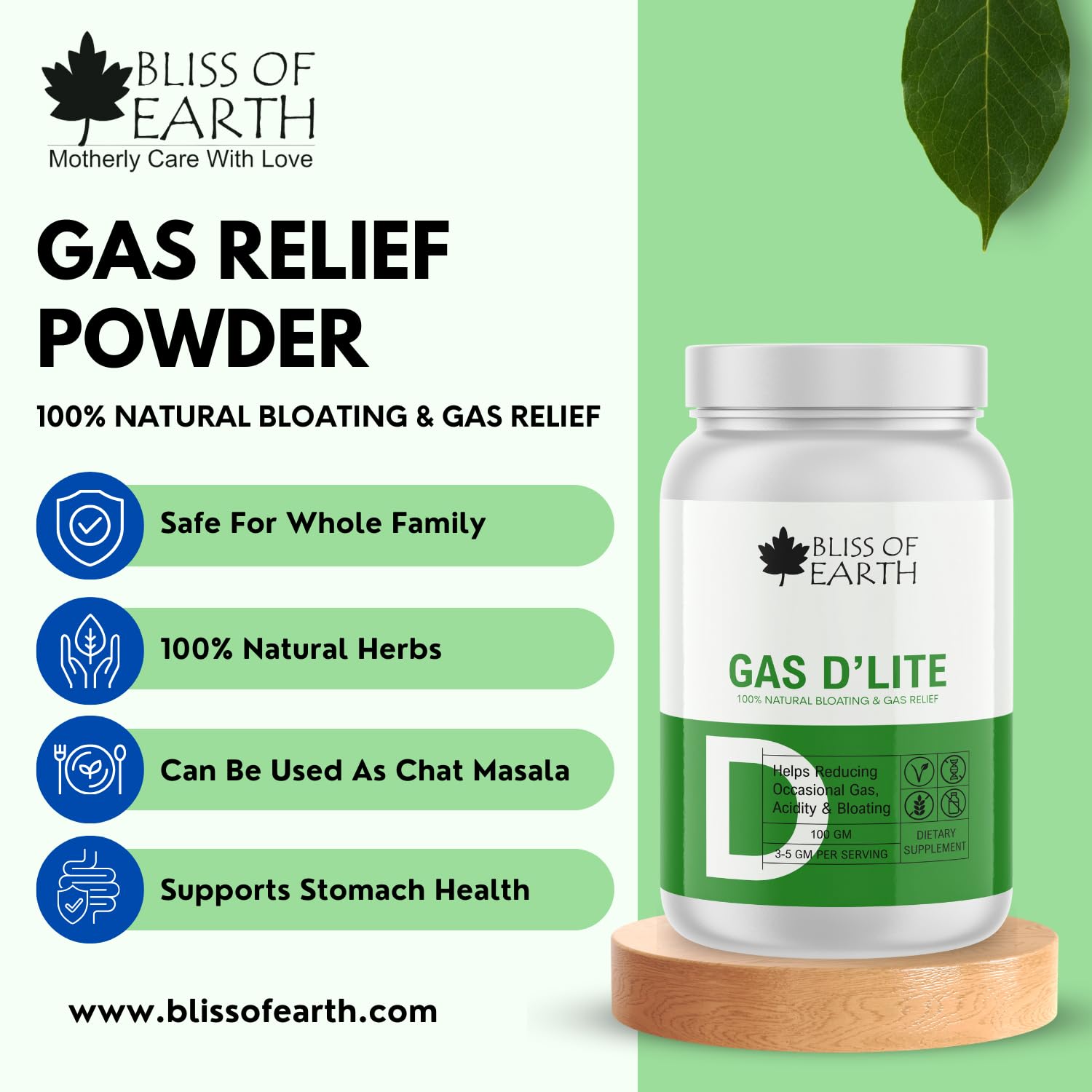 Bliss of Earth Gas Relief Powder For Fast Gas & Bloating Relief Eases Stool Pressure Digestive Aid for Acidity and Stomach 100gm (Pack of 2)