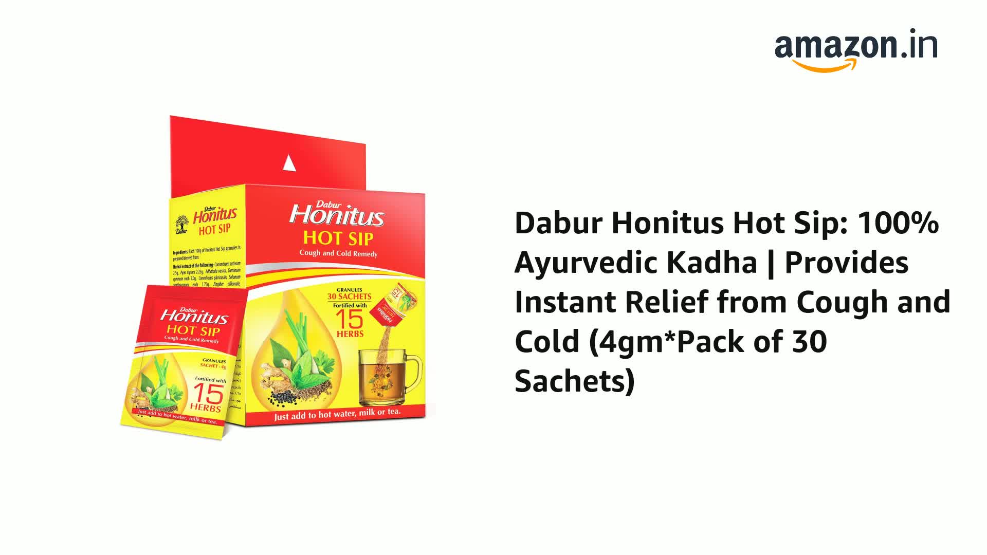 Dabur Honitus Hot Sip: 100% Ayurvedic Kadha | Provides Instant Relief from Cough and Cold (4gm*Pack of 30 Sachets)