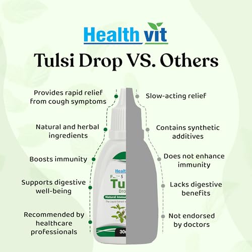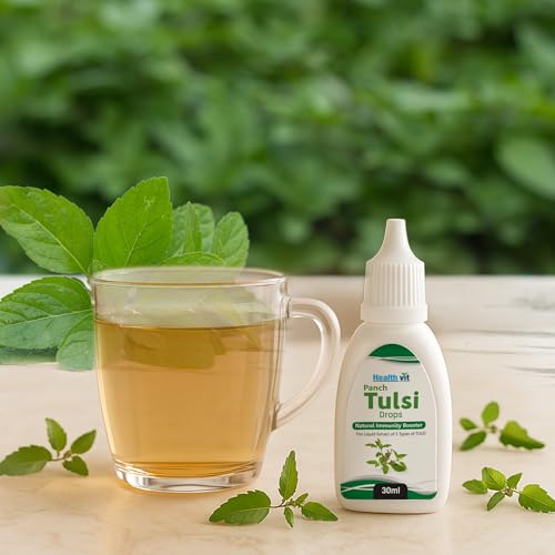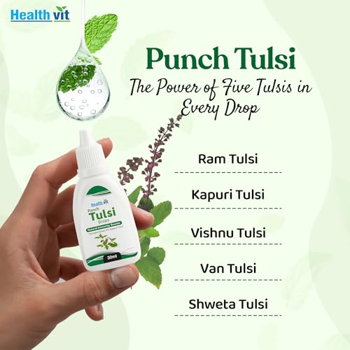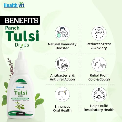 Healthvit tulsi drops 30ml is a liquid extract of five types of tulsi