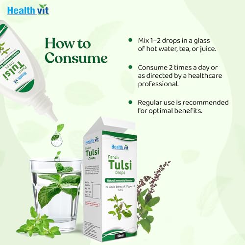 Healthvit Tulsi Drops - Concentrated Extract of 5 Rare Tulsi plant (panch tulsi drop) | Immunity Booster | Herbal life | Oral Health | Digestion | Cough and Cold Relief - 30ml