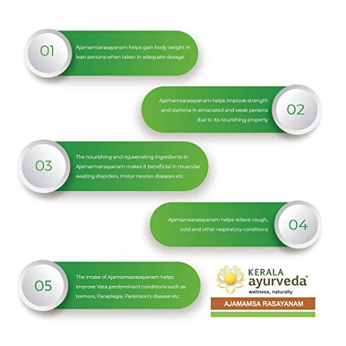 Ajamamsarasayanam helps relieve cough cold and other respiratory conditions and also improve Vata predominant conditions such as tremors Paraplegia Parkinson's disease etc.
