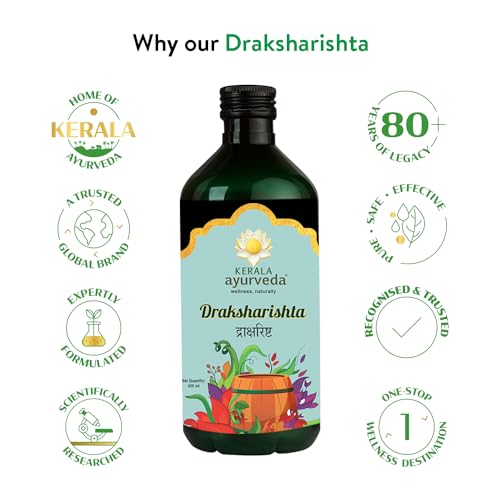 Fights iron deficiency anemia - Kerala Ayurveda Draksharishta is made with the goodness of blood-nourishing or rakthaprasadaka herbs that help relieve anemia. Unlike other iron supplements Draksharishta is a non-constipating and non-nauseating tonic that