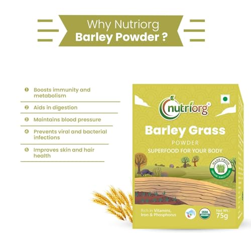 Nutriorg Certified organic Barley Grass Powder is made from barley grass cultivated in certified organic farmlands. Barley grass is extensively known as a nutritional powerhouse.