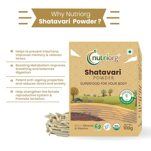 Nutriorg Organic Shatavari Powder 100g,Rejuvenates for Vata and Pitta that Promotes Vitality and Strength.