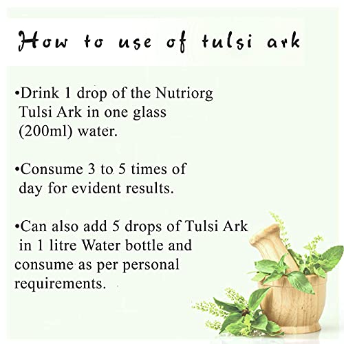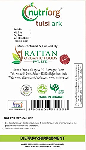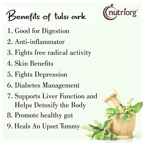 Nutriorg Tulsi Ark is made from 5 types of Tulsi namely Rama Tulsi Shama Tulsi Shwet Tulsi Vana Tulsi And Krishna Tulsi mixed in a very effective proportion.