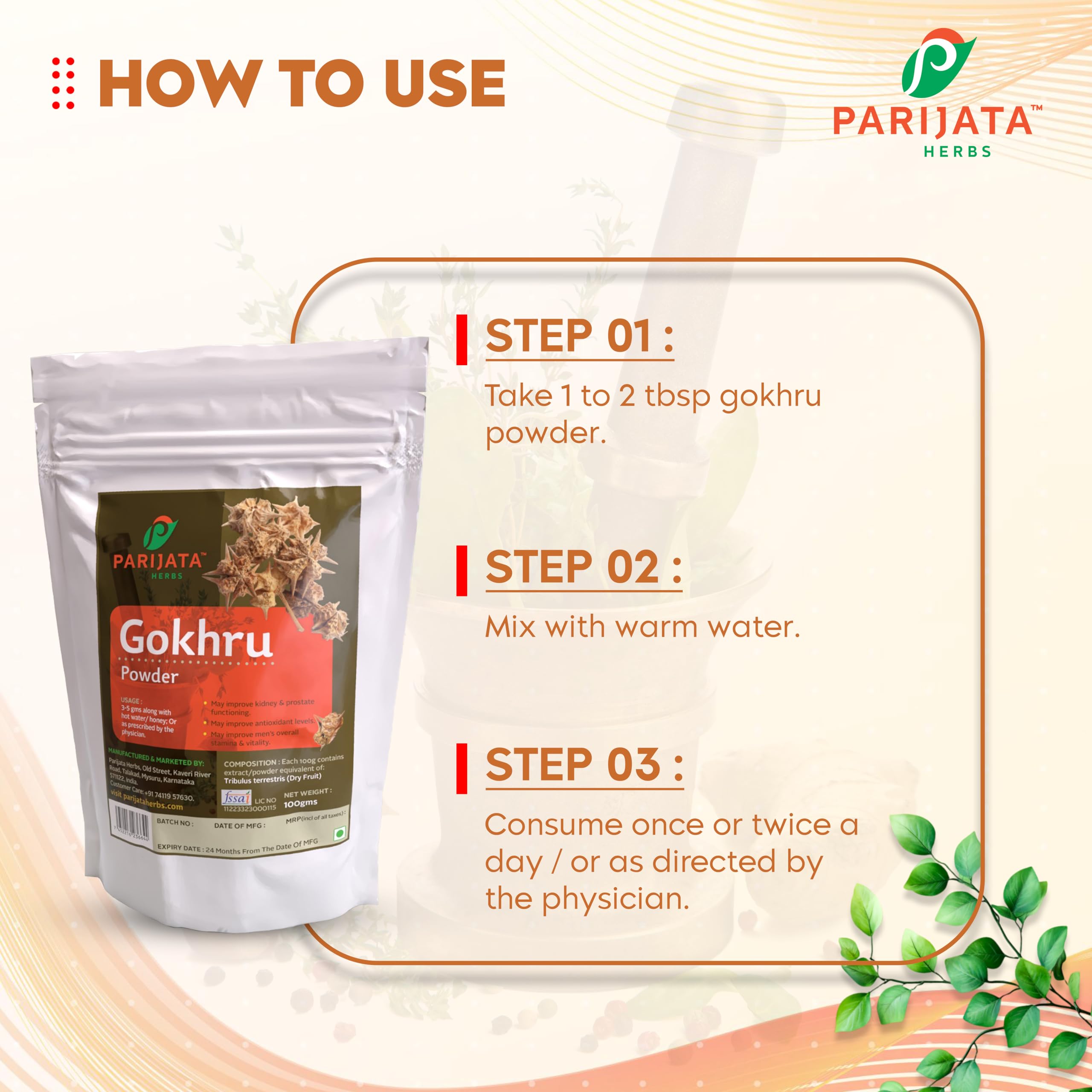 Potent Composition: Each 100g pack contains pure high-quality Gokshura powder.