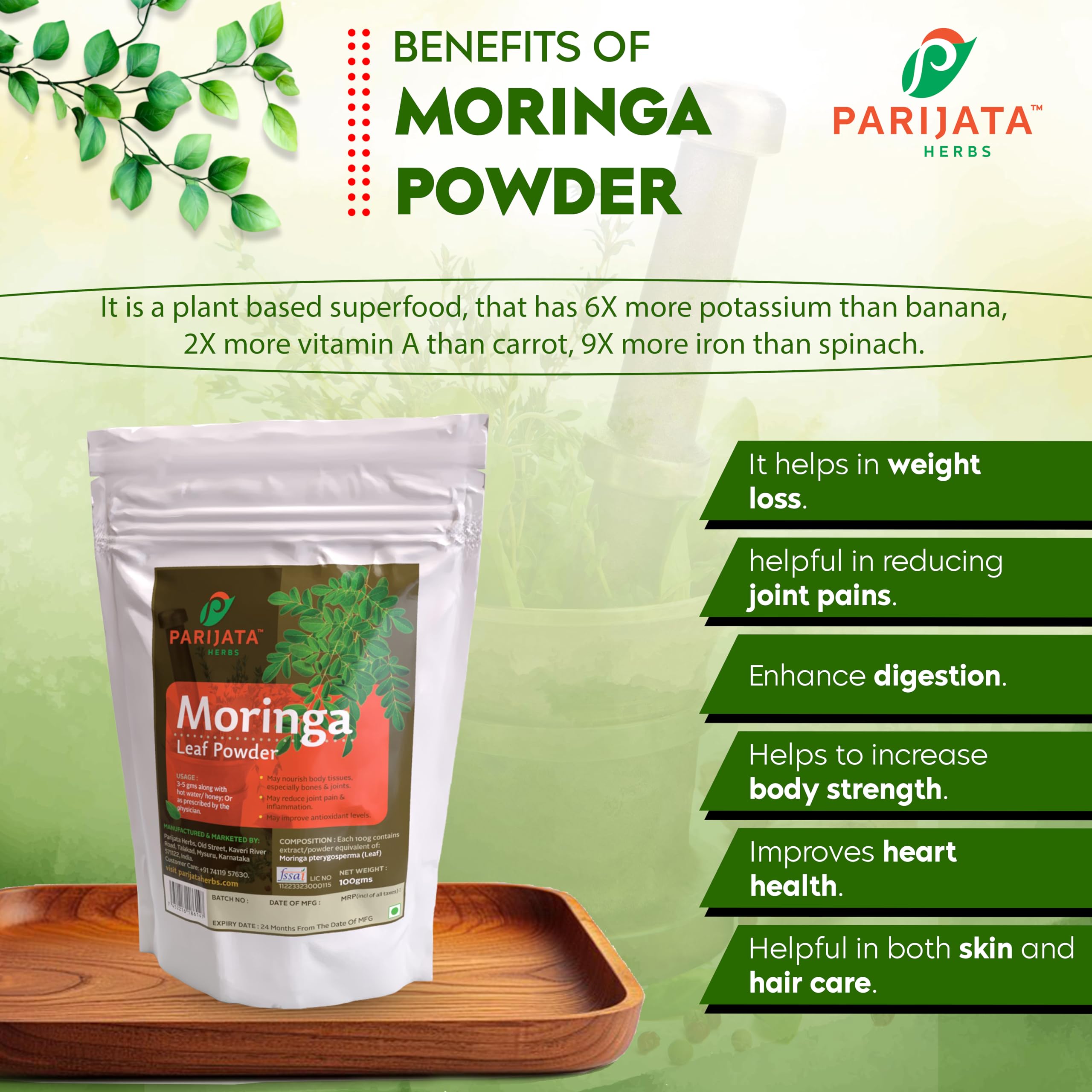 Parijata Herbs Moringa Leaf Powder | Drumstick Leaf Powder 100GM Immunity Booster Natural Multi-vitamin | Anti-Oxidant |Protein Rich