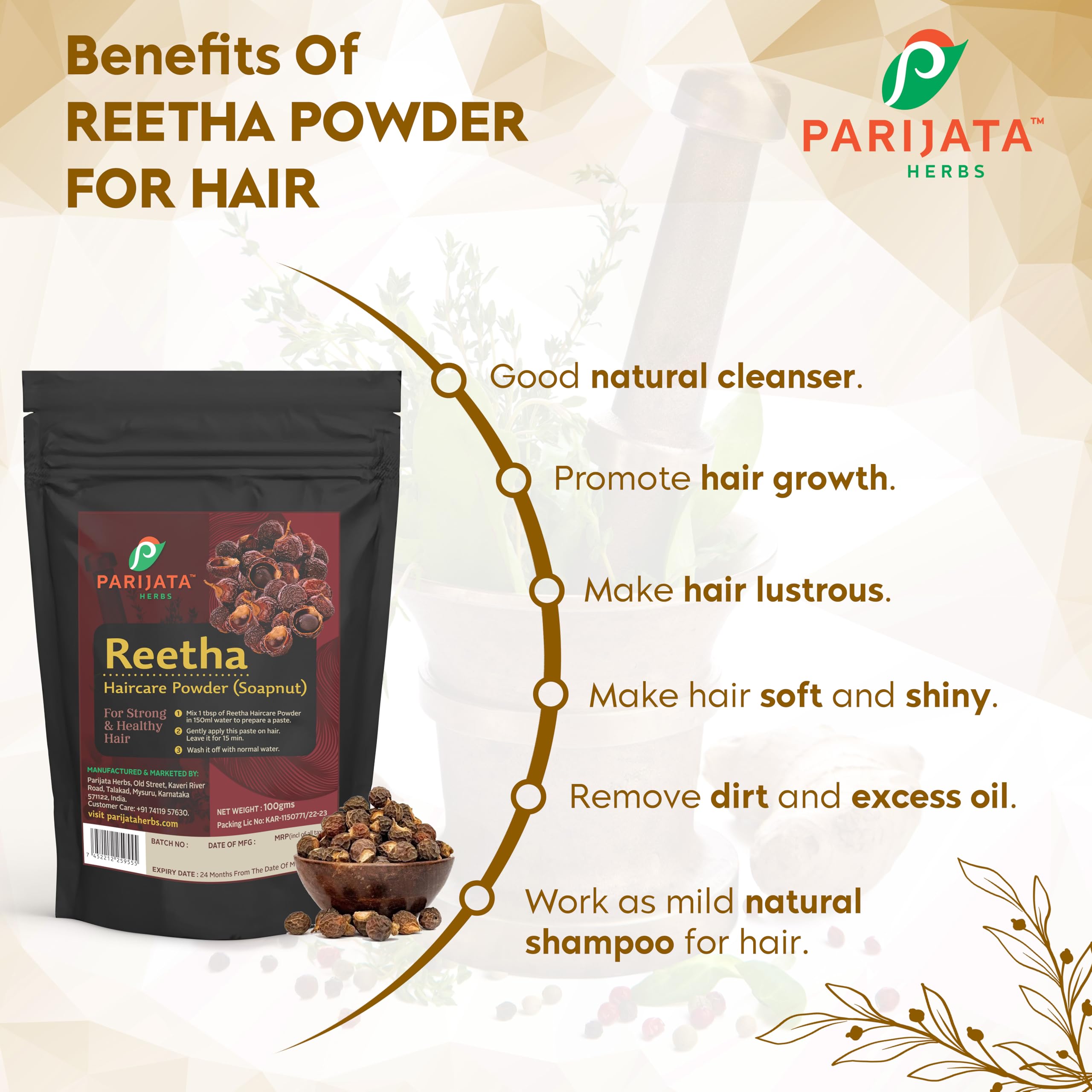 Parijata Herbs Reetha Haircare Powder Natural Soapnut for Strong and Healthy Hair 100g