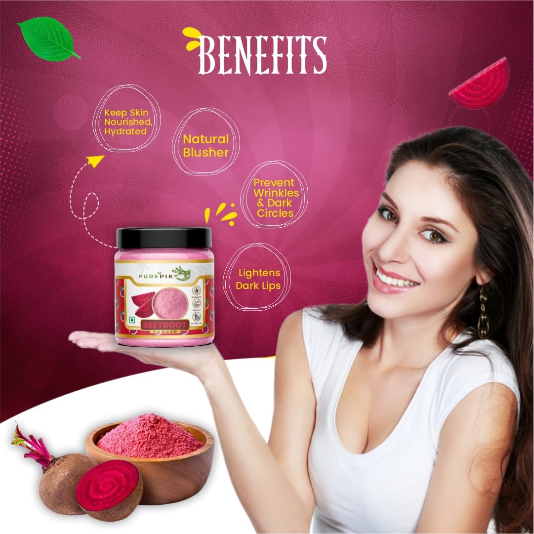 PURE PIK Beetroot Powder 200gm Jar Pack for face | hair | lips | drinking