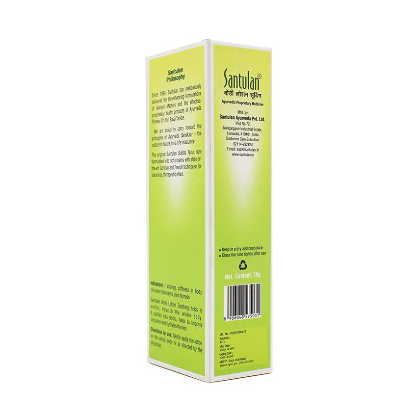 Santulan Ayurveda Body Lotion Sothing-70GM Each (Pack Of 2) For Skin Dryness And Vata-rogas and get Golden Oldie HerbsSukanthi Pills-1gm