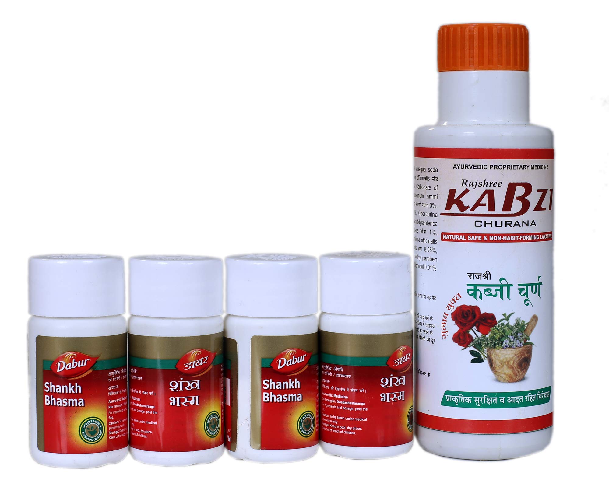 Shankh Bhasma 10 Gm Pack of Four (4) With Rajshree Kabzi Churana 100 Gm