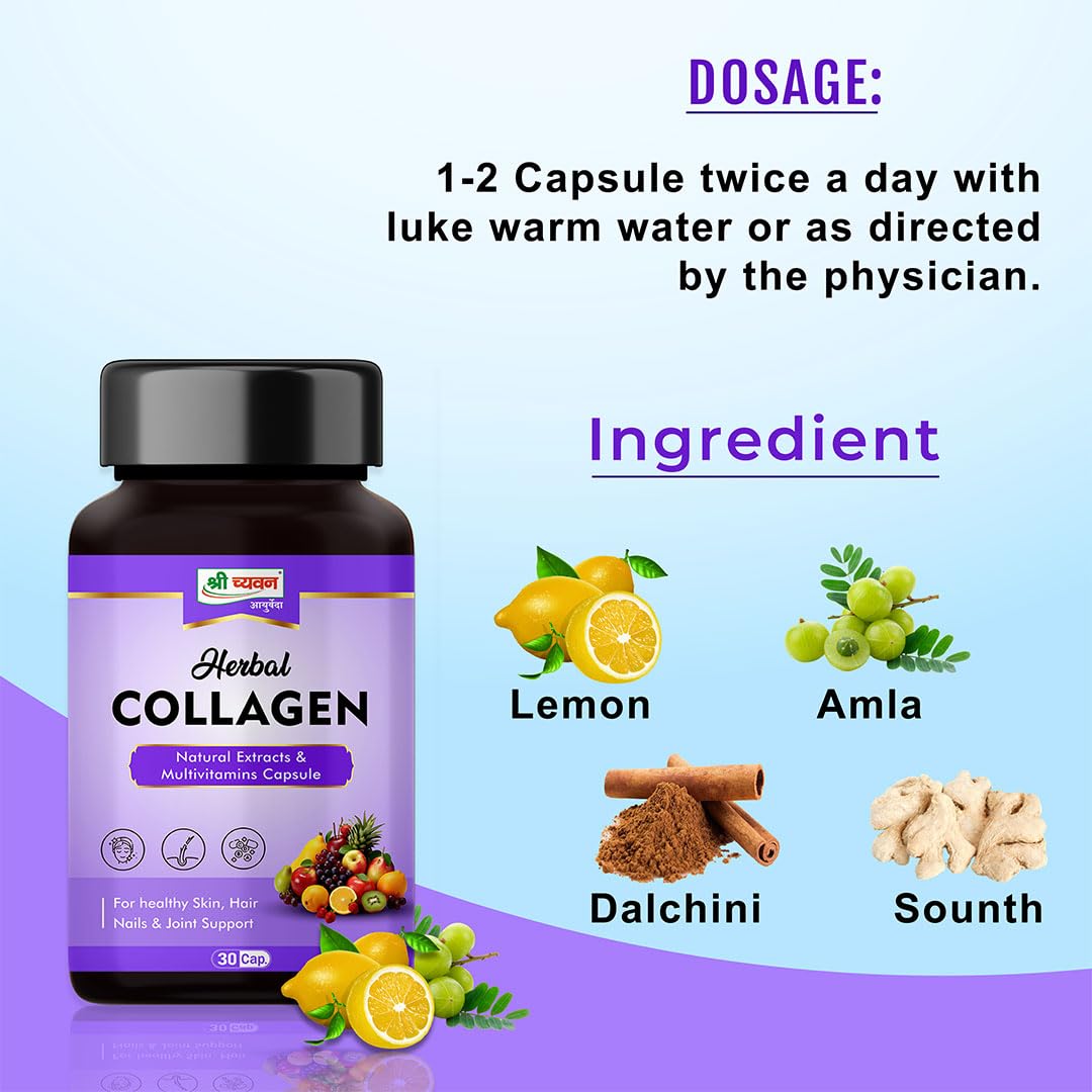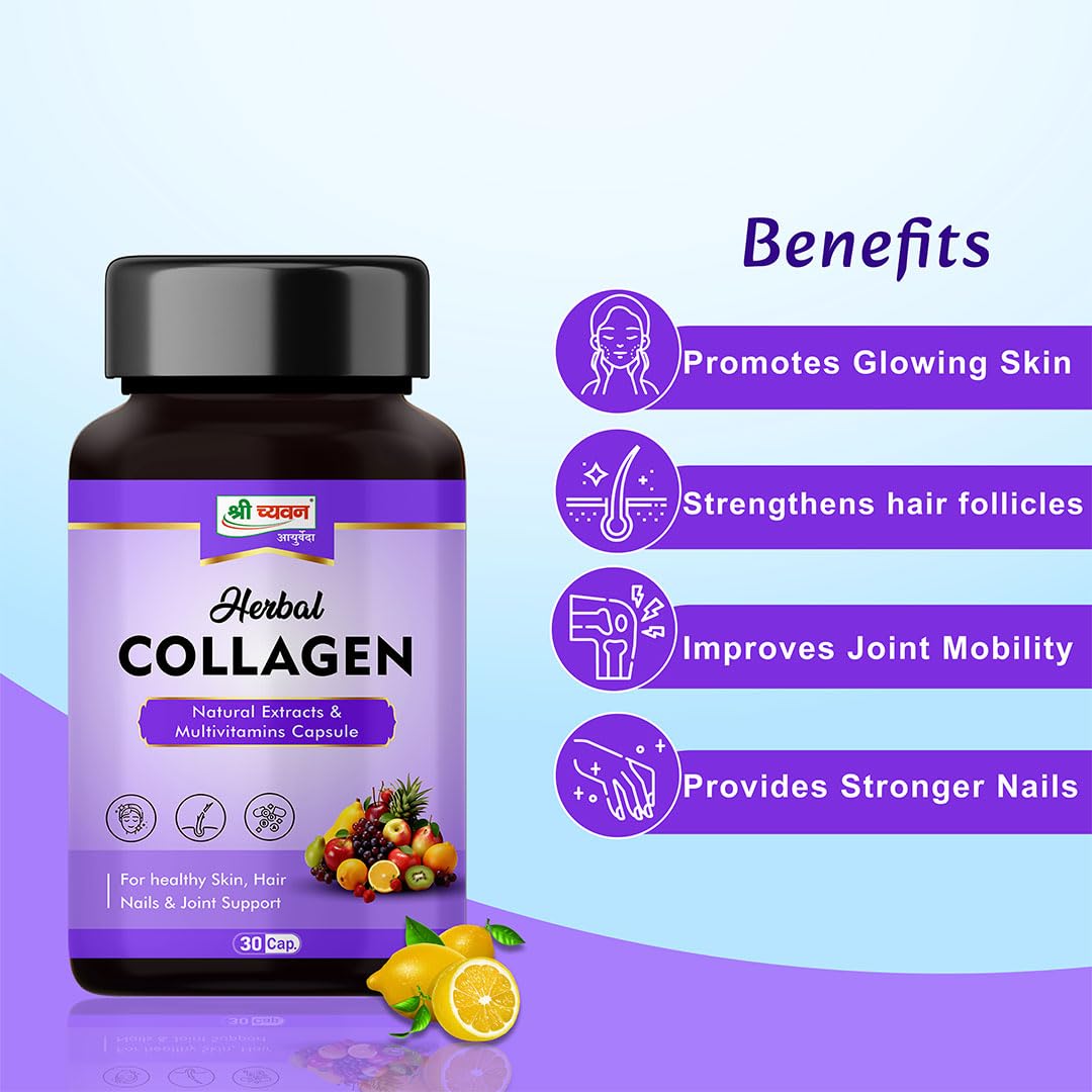 Shri Chyawan Herbal Collagen Capsule -30 Capsules |Helps to restore radiant & healthy skin|Protects the skin from Free Radicals|
