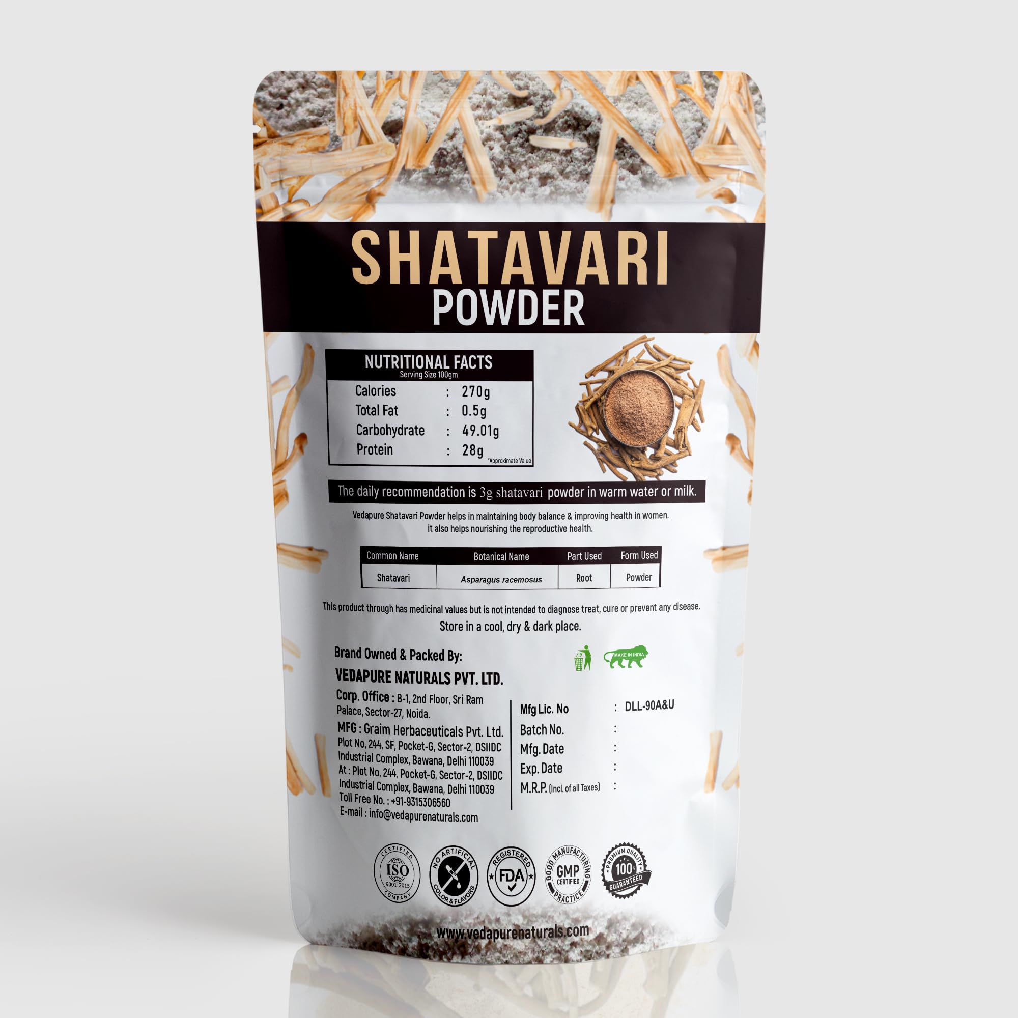 How to Consume: Take 3 gm of Vedapure Shatavari Powder with lukewarm water after meals to ensure optimal absorption and effectiveness. Consume it 1 to 2 times a day based on your daily needs or as directed by your physician. Regular use as part of your ro