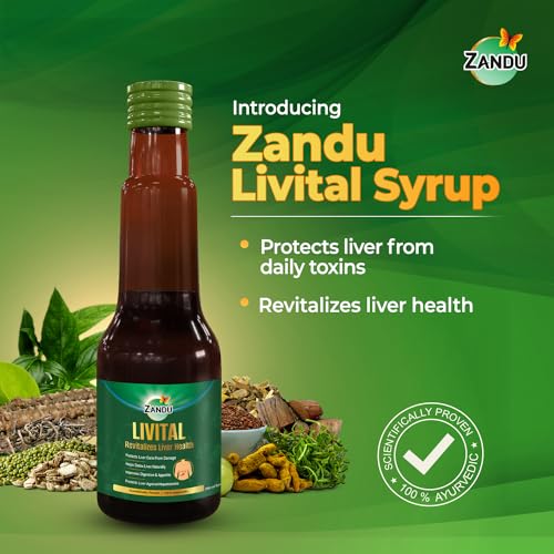 Zandu Livital Syrup – 200 ml | Scientifically proven Ayurvedic Liver Care & Detox Support |Revitalises Liver Health Naturally & Boosts Appetite & Digestion | Blend of 12 Potent Herbs