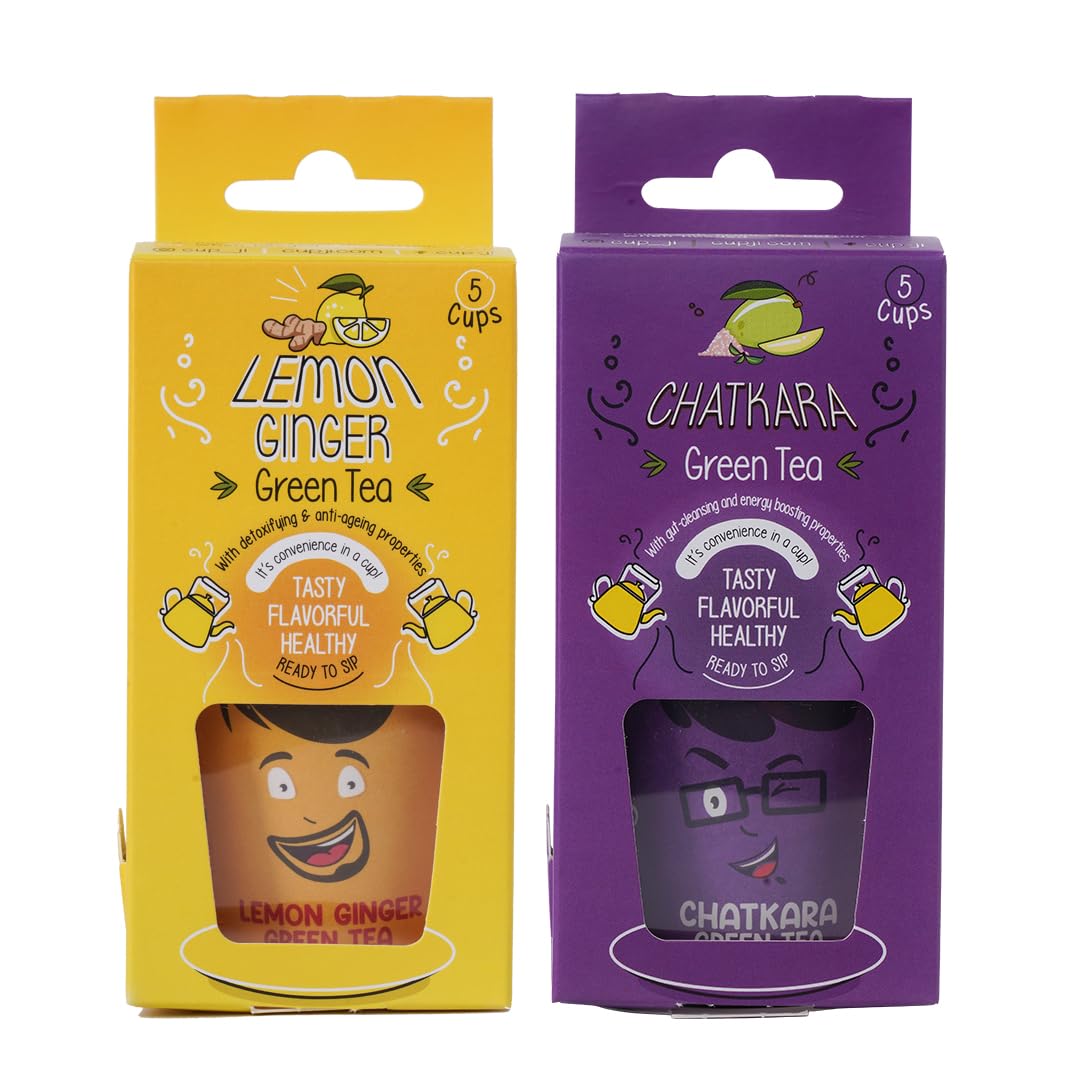 Cup-Ji : Combo Pack - Lemon Ginger & Chatkara Ready to Sip Green Tea | Improves Digestion & Boosts Metabolism | Sugar-free | Whole Leaf Teas | All Natural | Non - Bitter & No Calories | 2 x 5 Cups.