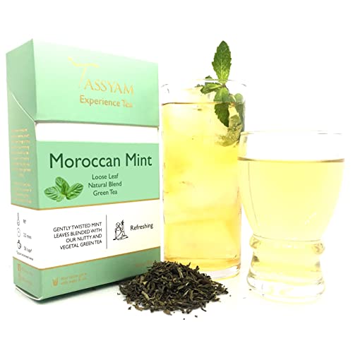 Tassyam Green Tea Ashna Spearmint 50 Grams - Iced Tea Summer Drink | Luxury Box - Loose Leaf with Mi