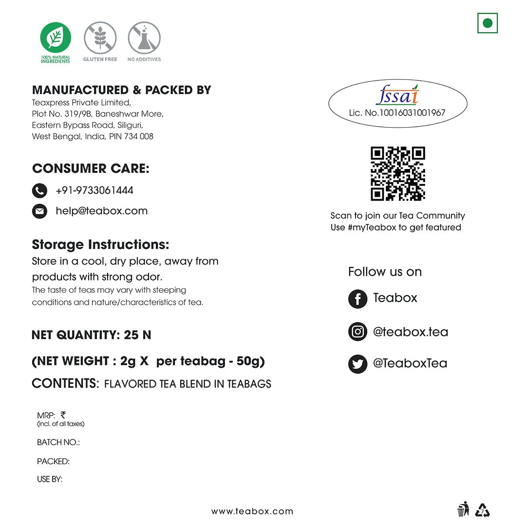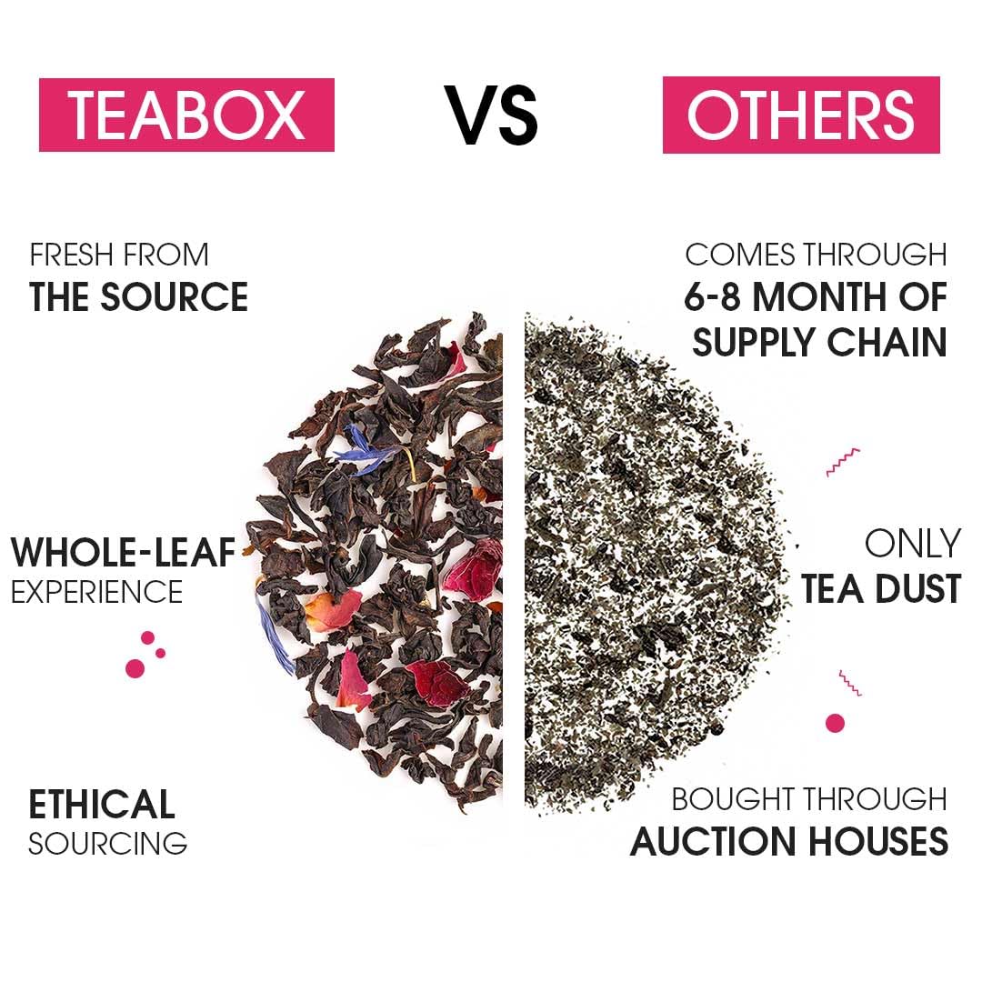 THE TEABOX DIFFERENCE Contains pure high grade tea leaves with more anti oxidants & bioactives. The unique pyramid design of teabags allows better unfurling of leaves for a better taste and experience.Can be steeped twice.
